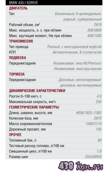 BMW 435i xdrive характеристикиBMW 435i xdrive характеристики