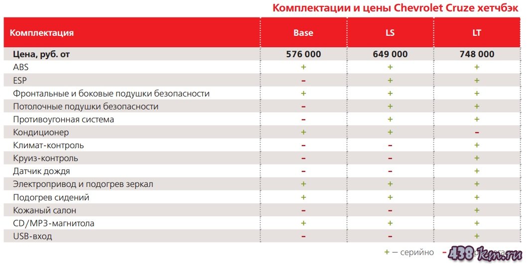 Для того чтобы приобрести автомобиль с агрегатом объемом 1,8 литра в максимальной комплектации (за вычетом дополнительного оборудования) будет достаточно 783 ООО рублей. Максимум, за что придется доплачивать, — это за окраску авто в цвет металлик (10 ООО рублей). Версия с мотором 1,6 и вовсе обойдется в 576 ООО рублей. Практически столько же стоит и самый дорогой Chevrolet Lacetti 5D, но разницу вы почувствуете сразу. Chevrolet Cruze — это в первую очередь комфорт. А уже потом — практичный пятидверный хетчбэк.