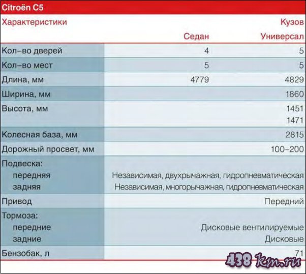 Citroën C5 С5 характеристикиCitroën C5 С5 характеристики