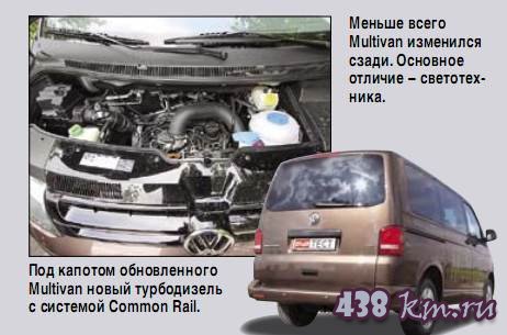 Студио Салон создает ощущение квартиры-студио. Более современный дизайн торпедо, местами мягкий пластик, приборы с постоянной «лунной» подсветкой - все выглядит приятно и очень по-легковому. Опасения, что останется налет прагматичности коммерческого авто, полностью развеялись. На фоне удобства и просторности Multivan универсальность минивенов превращается в пустой звук. Перейти с переднего ряда на второй или на задний диван - проще простого, даже в движении. Хотите развернуть второй ряд кресел, чтобы сидеть лицом к третьему? Легко. А сколько здесь отделений для мелочей и поклажи! Вместо прежних сеток по правому борту появились практичные ниши, полки и держатели для бутылок. И еще много разъемов для подзарядки телефонов, ноутбука. Да и дорожный холодильник можно подключить. В плане грузовместимости тоже все в порядке. Когда понадобилось отвезти на дачу сетку-рабицу, Multivan пришелся очень кстати. Снял заглушки под задним диваном (даже сиденья снимать не пришлось) - и три упаковки полуторамет ровой длины легко вошли в салон. К габаритам машины приспосабливаешься очень быстро. Да и не такая уж она большая. На дороге места занимает не больше, чем седан бизнес-класса. Правда, салон у Multivan просторнее, чем даже у немаленьких SUV. А посадка такая,что на владельцев внедорожников посматриваешь свысока. Что же касается маневрирования и парковки, то задачу существенно облегчает парктроник. К тому же на экран аудиосистемы выводится визуальная индикация о приближении к препятствию. Главная перемена под капотом -новый мотор 2,0 TDI. Его основное отличие - переход на Common Rail. Мотор оснащен общей топливной планкой, а не отдельными насос-форсунками, как ранее у большинства VW. Новичок выдает 340 Нм тяги, чего вполне достаточно, чтобы справиться с весом более чем 2-тонной машины. Конечно, темперамент Multivan горячим не назовешь, но бодро держаться в потоке для него не проблема. А как меня порадовала экономичность! Расход в городе не доходил до 9 л/100 км, а за городом составлял 7 л/100 км. Несмотря на большую высоту и массу, Mutivan совсем не кажется увальнем. Подвеска жестковата - возможно, даже излишне. На неровностях зачастую трясет. Но вслед за поворотом руля «муль-тик» послушно заныривает в поворот. Правда, пассажиры с непривычки хватаются за ручки сидений. Страшновато, когда сидишь так высоко над землей... Один из четырех Модификация Multivan - одна из четырех, выпускаемых на платформе T5. Она самая комфортабельная. Но и ее степень удобства зависит от комплектации. Наша машина - в самой обычной версии Startline (есть также Comfortline, Highline и Panamericana), но даже в ней - поворотные кресла и раскладной стол. Конечно же, цена такого авто не копеечная, но в конце теста ключи от Multivan из моих рук пришлось едва ли не вырывать. ■ |