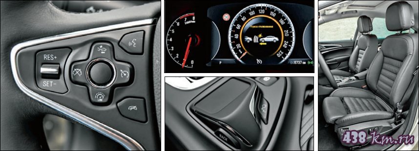 Часть сервисных функций возложена на экранное меню в комбинации приборов. Меню отличает наличие очень приятной графики и отсутствие интуитивно понятной логики. Утешает то, что и от экрана, и от меню, и даже от тачпада можно отказаться без ущерба для функциональности. Впрочем, какие тачпады с экранами? Ведь главное - «Инсигния» с самого рождения умела и любила ездить!