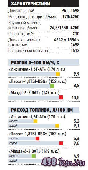 Турбомотор объемом 1,6 литра немцы полагают са мым массовым, на что намекает и вполне человеколюбивый ценник. Двигатель вполне ладит с коробкой, а в упрек силовому агрегату можно поставить разве что категорическое нежелание тормозить двигателем. Впрочем, куда неприятнее особенности настройки электроусилителя руля. Покупателям наиболее доступных версий отныне не положено заназывать управляемое шасси «Флекс-Райд»: оно исчезло из списка опций, а вместе с ним - и внятный усилитель. Информации на руле вроде и теперь хватает - в загогулины горных серпантинов «Инсигния» попадает без проблем. Трудности начинаются в затяжных пологих поворотах. Стоит немного притормозить, как передние колеса догружаются, и седан начинает уменьшать радиус поворота. Но на руле это не чувствуется совершенно! Приходится внимательно следить - не целится ли бампер в очередной отбойник. А лучше сразу забыть, что автомобиль умеет ехать быстро, и успокоиться.