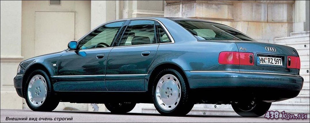 Мало кто сейчас помнит, что бренд Audi не всегда соперничал с Mercedes-Benz и BMW, когда-то машины с четырьмя кольцами на решетке радиатора своими соперниками могли считать разве что автомобили Opel. Сегодня все изменилось: представители Audi хоть и скучны внешне, зато блестяще развиты, кроме того они обладают способностью удивлять, а это и есть тот фундамент, на котором выросла марка в нынешнем виде. В свое время она поразила всех, отказавшись от спортивной карьеры. За довольно короткий срок Audi удалось не только догнать признанных грандов, но и научиться играть по правилам, установленным BMW и Mercedes-Benz, даже лучше их самих! Первые шаги в этом направлении были весьма запоминающимися: сумасшедшие спортивные версии гражданских машин (RS2 и S6), а в конце 80-х — выпуск большого седана! К сожалению, модель V8 оказалась не слишком удачной: по сути, это была раздутая версия 100-ки, которая недотягивала до уровня даже состарившегося к тому времени Mercedes-Benz W126.