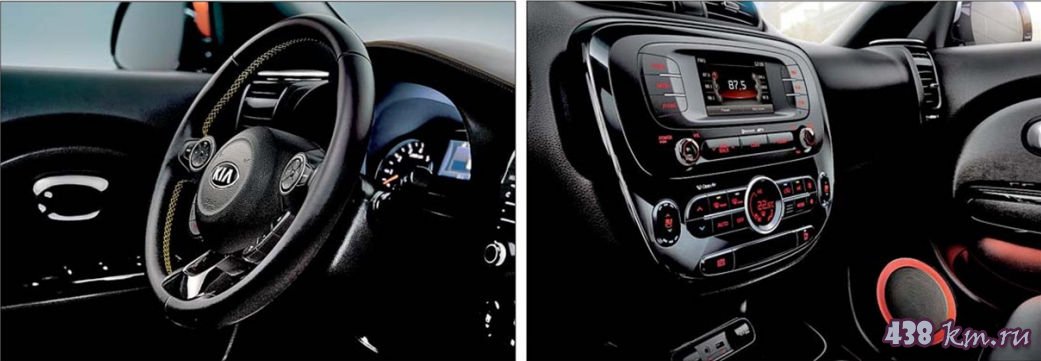 Стандартные передние сиденья имеют лучшую, чем раньше, боковую поддержку за счет более развитых боковых валиков подушек и спинки. В дорогих комплектациях предлагается вариант с электрической регулировкой водительского сиденья в восьми направлениях. Обогрев как передних, так и задних сидений доступен во всех комплектациях. Подобрать идеальную посадку поможет и новая конструкция рулевой колонки, позволяющая теперь регулировать как вылет, так и наклон в пределах 40 мм. У нового Soul очень удобны и задние сиденья благодаря оптимальной форме и углу наклона спинки, что в данном классе автомобилей встречается нечасто. Сзади достаточно места даже для трех пассажиров. В результате эргономика нового Soul стала заметно лучше, теперь по этому показателю он один из лидеров в своем сегменте.