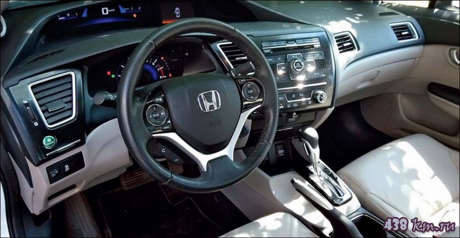 Изменились фары, решетка радиатора, форма переднего и заднего бамперов, задняя оптика, появились щедрые хромированные вставки, а линии кузова стали четче. Теперь Civic выглядит более солидно и строго. А что в салоне? Архитектура с футуристической двухъярусной приборной доской и кокпит, ориентированный на водителя, знакомы по предшественнику, однако в новой машине видна более тщательная проработка цветов и фактур материалов. Если раньше фирменная «двухэтажная» панель была выполнена из простецкого на вид серого пластика, то теперь применены мягкие панели контрастных цветов, в середине появилась серебристая вставка, а рукоятки, кнопки и дефлекторы воздуховодов украшены хромированными окантовками. Качество отделки — на высоком уровне, и в этом буйстве дизайна единственным непродуманным элементом выглядит селектор коробки, торчащий из невзрачной окантовки, покрашенной как будто серебрянкой.