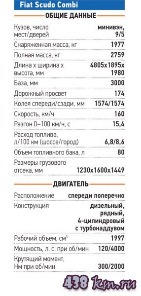 ![]() Еще относительно недавно линейка коммерческих автомобилей FIAT в России была довольно скудна и не слишком актуальна: например, Ducato елабужской сборки,который продавался у нас, у себя на родине уже давно был снят с производства. И вот ситуация начала меняться: год назад на нашем рынке появился современный Ducato, а нынешним летом стартовали продажи более компактного «коммерсанта» под названием Scudo. Fiat Scudo, занимающий в корпоративной табели о рангах промежуточное положение между компактным «каблучком» Doblo и более крупным вэном Ducato, производится на одном конвейере с Peugeot Expert и Citroen Jumper на заводе Sevel Nord недалеко от французского города Валаньсен - такая кооперация позволяет существенно сэкономить на производственных расходах. По сути, Scudo отличается от своих двойников лишь иным оформлением решетки радиатора, на которой сияет фирменная красная эмблема. Правда, если французские машины предлагают выбор из трех дизельных силовых агрегатов - 1.6 л (90 л. с.) и 2.0 (120 либо 163 л. с.) - то Fiat оснащается исключительно двухлитровым 120-сильным турбодизелем: он украшен шильдиком MultiJet, хотя на самом деле представляет собой тот же мотор Peugeot. В интерьере, помимо расположенной на ступице рулевого колеса «родинки» с надписью FIAT, иных отличий от «иноземных» братьев нет. ОТНЮДЬ НЕ СКУДНЫЙ ВЫБОР Fiat продается у нас в двух ипостасях: грузовой и пассажирской. Первая, именуемая Cargo, представлена в нескольких исполнениях, которые отличаются по длине (4805 или 5135 мм), высоте (от 1980 до 2290 мм) и грузоподъемности (от 925 кг до 1125 кг). В зависимости от типа кузова объем грузового отсека варьируется от пяти до семи кубометров. Пассажирский вариант существует в версиях Combi и Panorama. Базовый Combi рассчитан на девять человек, а задние двери у него сделаны распашными. Трансформация салона предполагает складывание спинок сидений второго и третьего ряда, причем при необходимости кресла можно демонтировать. Scudo Panorama Family идет исключительно в длинном варианте с подъемной задней дверью и 8-местным салоном - и, разумеется, в более богатой комплектации: в списке оснащения появляются кондиционер, подушка безопасности пассажира, велюровая отделка кресел и окрашенные в цвет кузова бамперы и зеркала. В свою очередь Panorama Executive оснащается климат- и круиз-контролем, обогревом передних сидений, электроприводом зеркал и шторкой в багажнике. ![]() Для подобных авто обустройство салона, особенно задней его части, имеет особое значение. Правда, в случае с пассажирским Scudo трансформация предусматривает лишь складывание спинок шести раздельных кресел. Есть и более радикальный вариант: каждое из сидений можно демонтировать по отдельности. если стоит задача выделить под груз максимальный объем внутреннего пространства. Понятно. что минивэны предполагают куда более затейливые метаморфозы в салоне, однако для потенциального «скудовода» вполне достаточно уже имеющегося арсенала. Все три ряда кресел в салоне расположены по принципу амфитеатра, где сиденья каждого следующего ряда стоят заметно выше предыдущего: второй ряд выше первого на 70 мм, а третий выше второго на 30 мм. Буквально повсюду - в дверных панелях, на потолке и даже под полом салона - можно обнаружить различные тайнички и полочки для мелочей. А выделить место для более крупной поклажи можно за счет последнего ряда сидений. ЖИЗНЬ В ДВИЖЕНИИ Двухлитр
