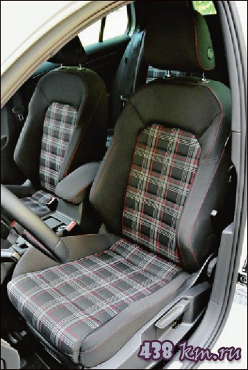 Что можно назвать основной уникальной чертой интерьера Golf GTI? Конечно же, характерный рисунок обтягивающей сиденья ткани - точно такой же. как на материале под названием тартан, который известен нам как «шотландка». Его «придумал» еще в 1974 году дизайнер Гунхильд Лильеквист для первого «спортивного Гольфа», и мне она показалась совершенно неуместной в строгом салоне немецкого до мозга костей автомобиля.