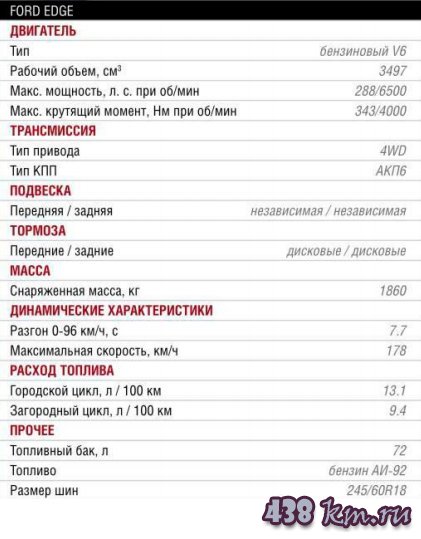 ![]() Ford Edge собирают в канаде семь лет, но до нас этот кроссовер добрался лишь в самом конце прошлого года, сразу обосновавшись на сборочном конвейере в Елабуге. Поздновато, ведь на горизонте уже маячит Edge второго поколения. Его обещают привезти в 2016 году но и нынешняя «грань» (так можно перевести с английского языка название модели) порадует вас своей остротой. «СМОТРИ, ЧТО СЕЙЧАС БУДЕТ» Ford Explorer для вас слишком большой, a Kuga слишком маленький и европейский? Добро пожаловать в Edge - кроссовер, созданный на той же платформе Ford CD3, что и предыдущая Mazda 6 и безвременно почившая Mazda СХ-9. ![]() Выглядит Edge куда более подтянутым и стремительным, чем его японская родственница, тем не менее, сохраняя дух настоящего американского автомобиля, достаточно большого и грозного, чтобы своим видом внушать уважение соседям по потоку. Одной лишь внешностью достоинства Edge не ограничиваются - под капотом кроссовера стоит 3,5-литровый атмосферный V6 мощностью 288 лошадиных сил. Практически такой же двигатель, только о 294 «лошадках», ставят на «Эксплорер», но Edge легче, а, значит, энерговооруженность у него отличная. Движок, по американской традиции употребляющий дешевый 92-й бензин, трудится в паре с довольно расторопным 6-ступенчатым «автоматом», а полный привод «по требованию» осуществляется посредством многодисковой муфты, подключающей заднюю ось. Ключ на старт, запускаю мотор, а в салоне тишина: на холостых мотора почти не слышно, но и во время разгона внутрь прорывается только приятное, бархатистое звучание большого бензинового атмосферника - ни тебе свиста ветра, ни шумов в районе колесных арок. АКП может немного притормозить на старте, как бы говоря: «смотри, что сейчас будет». А будет впечатляющий разгон до сотни за 7,7 секунды... и штраф за превышение, если вовремя не убрать ногу с газа, - динамика сохраняется почти до самой максималки в 178 км/ч. Учитывая, что на 150 км/ч чувствуешь себя так же комфортно, как на 90 км/ч, впору ставить на свой смартфон приложение, следящее за скоростью. Кстати, я описываю свои впечатления от езды в простом Drive, а ведь в этом «автомате» есть и спортивный, и ручной режимы. Родство с прилично управлявшейся Mazda СХ-9 чувствуется и в настройках подвески Edge: минимальные поперечные крены, отличная курсовая устойчивость, совсем небольшая для «американца» раскачка на волнах, при этом подвеска достаточно мягкая, чтобы не реагировать на лежачих полицейских и трамвайные пути, а пробить ее очень сложно. Разве что в неподходящей по ширине «европейской» асфальтовой колее МКАДа кроссовер чуть приплясывает, в остальном, в городе и на федеральном шоссе с хорошим асфальтом, Ford Edge доставляет только приятные эмоции. Особенно тем, кто, как и я, не любит, когда драйверские ощущения напрягают своим постоянным и неизбежным присутствием. Руль кроссовера на прямой кажется совершенно пустым, наливаясь тяжестью только в поворотах, тем не менее Edge, как, впрочем, и новый Explorer, страшно далек от классических американских традиций строительства автомобилей, в принципе не имеющих на руле никакой обратной связи. ![]() С БАРСКОГО ПЛЕЧА Осмотревшись в салоне и поостыв от восторгов по поводу динамики, понимаешь, что на серьезные продажи нынешнего поколения в России фордовцы не рассчитывали,скорее, «столбили место» под следующий Edge, который, напомню, окажется у нас не ранее 2016 го