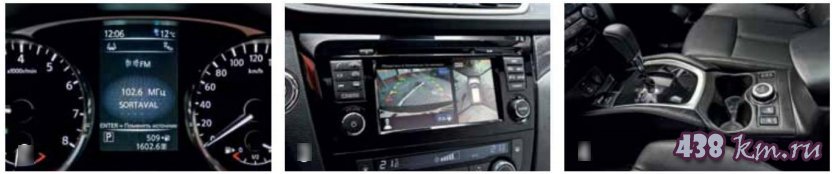 Торпедо «Трейла» максимально унифицировано с «кашкаевским», разнятся по большому счету лишь материалы декоративных вставок, однако и здесь нет причин для уныния - по сравнению с прошлым поколением передняя панель просто роскошна. Изящные линии, плавные изгибы - почти ничего лишнего, кроме черной лаковой накладки вокруг рычага селектора трансмиссии, да и она не выбивается из стиля, просто отпечатки пальцев на черном глянце будут слишком заметны. Простая, очень информативная приборка с большим дисплеем в середине, на который выводятся любые данные - от маршрутного компьютера до настроек автомобиля, богатая медиасистема с интерактивным семидюймовым экраном - кроме привычной навигации и кругового обзора через глазки встроенных видеокамер в системе «Nissan Connect» есть даже такие функции, как работа с приложениями смартфона. Раздельный климат, мультируль, прозрачная крыша, бес-ключевой доступ в салон и кнопочное зажигание - вот далеко не полный перечень опций, доступных современному X-Trail.