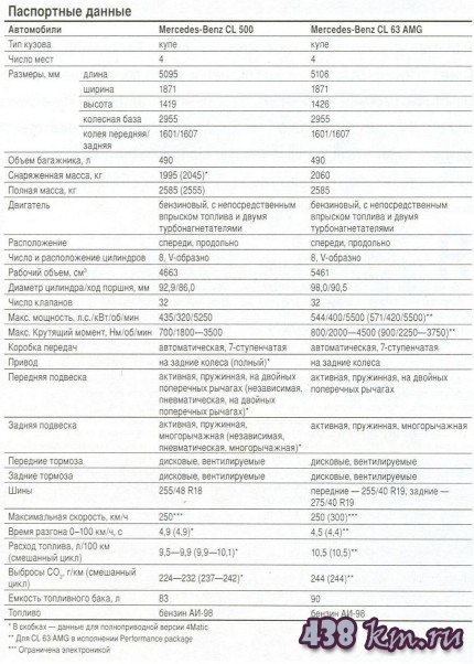 Техническое описание Mercedes CL 500