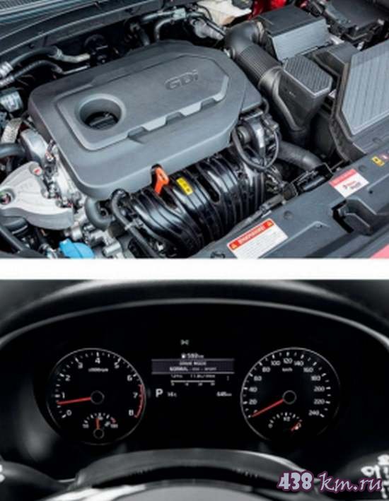 Что действительно достойно внимания, так ото новый бензиновый двигатель 2.4 GDI семейства Theta II с непосредственным впрыском топлива и автоматическая восьмиступенчатая коробка передач для старого дизельного мотора. Мощность нового агрегата - 184 л.с. Несмотря на свою прыть, он весьма экономичен, расход топлива остаётся в пределах в,6-12 л в зависимости от режима. Выбора трансмиссии для него нет, только шестиступенчатый автомат. А новый восьмиступенчатый идёт в паре с двухлитровым дизелем. Вы можете заподозрить боссов концерна в дискриминации любителей бензина, но это не так. Новая АКПП помогает максимально раскрыть возможности мотора на тяжёлом топливе, а двигателю 2.4 л вполне хватает и шести передач. Впрочем, как ожидается, наибольшим спросом у покупателей будет пользоваться проверенный временем двухлитровый бензиновый 2.0 МИ мощностью 150 л.с.. ведь только с ним появляется возможность выбора трансмиссий: автоматическая или механическая, полный или передний привод