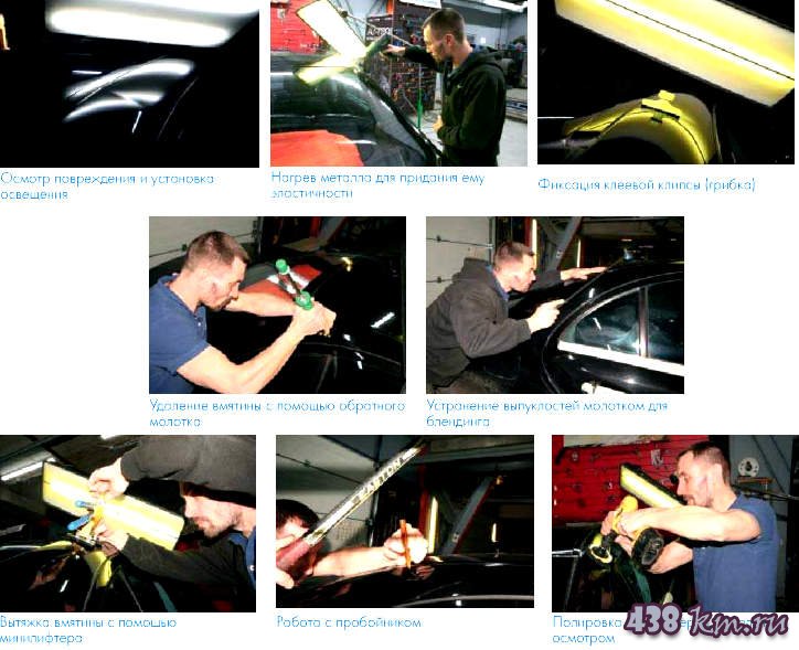 Устранения вмятины без покраски, как делают ремон в мастерских