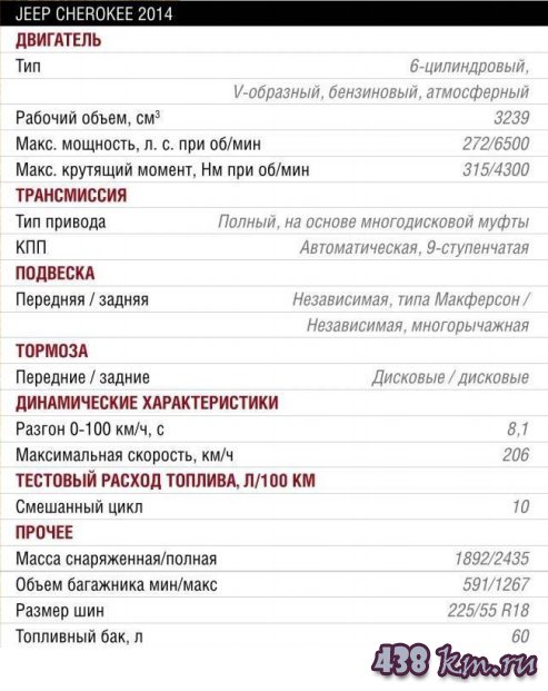 Хотя заявленный производителем объем багажника насчитывает почти шесть сотен литров, каким-то запредельно огромным он не кажется. Для бытовых нужд его в подавляющем большинстве случаев будет достаточно, учитывая, что, сложив задний ряд сидений, можно превратить «Чероки» в двухместный фургон с кузовом объемом 1267 литров. Самая доступная версия нового Cherokee стоит 1420 000 рублей, правда, надо помнить, что это будет переднеприводный кроссовер. За полный привод придется доплатить сто тысяч рублей. Бензиновых двигателей предлагают два: рядная четверка объемом 2,4 литра и такой, как у нас, 3,2-литровый шестицилиндровый агрегат. За более мощный мотор просят дополнительные 150 000 рублей, правда, предлагают его лишь в версии Limited. Ну a Trailhawk — лучший «проходимец» в семействе новых Cherokee - обойдется в 1 830 000 рублей. Главное же откровение в том, что автомобиль, который еще недавно был на 120 процентов американским, вдруг взял и сделался практически полностью европейским. Поиск параметров сходства с предыдущей версией имеет все шансы начаться и закончиться у семи фирменных прорезей на радиаторной решетке.