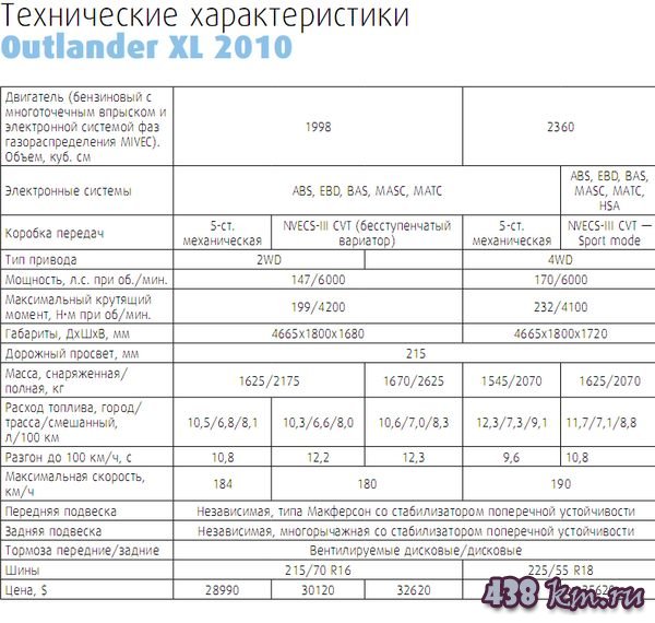 ![]() «Рытвина, сэр», «Лежачий полицейский». Попробуйте змейку — влево-вправо — и вы поймете, что, несмотря на большой рост и высокий клиренс, новый XL не кренится и не рыщет по дороге. Для наших широт Если машина так едет, нужно быть готовым, что она стоит как небольшое предприятие. Поэтому в первую очередь следует отметить, что при цене гораздо более скромной, чем у немецких «одноклассников», у Outlander XL достаточно заслуженных баллов в категории «комфортное передвижение повышенной уверенности». Это не только означает то, что если вы решитесь предпринять путешествие, то совершите его с комфортом. Также это значит, что если вы живете в городе, который еще не до конца определился, где он расположен — в Европе или в другом, менее цивилизованном регионе, при этом по количеству преодоленных препятствий каждая поездка на работу заслуживает называться приключением, то способность автомобиля с достоинством абстрагироваться от мелких дорожных неопрятностей вам определенно обеспечена. Главный вопрос — что нового в модели 2010 года? Ответ прост и очевиден: дизайн передней части, более респектабельный салон и появление переднеприводной комплектации с двухлитровым двигателем. Но главное, это даже не то, что изменилось, а то, что осталось без изменений: Outlander XL— по-прежнему образцом воплощения принципа «больше автомобиля за ваши деньги» от названия до кончиков подрулевых лепестков вариатора. ![]() Что касается внешнего вида, то эффектный «лансер-иксовский» Jet Fighter и его насупленная оптика — это, конечно, прекрасный подарок будущему владельцу. В салоне изменения серьезнее и основательнее. Появились кожаные вставки на дверях и приборной панели, причем из дверях это не просто какие-то клочки «для красоты», а большие, практичные и уютные поверхности. Кроме этого, более качественным стал пластик и улучшены в целом материалы отделки. Приятные мелочи В тестовом авто в максимальной комплектации также присутствуют такие приятные «мелочи», как хромированные вставки, электролюк, премиальная аудиосистема Rokford с сабвуфером, система бесключевого доступа и прочие атрибуты красивой жизни. При этом для задних пассажиров есть и DVD с откидным экранчиком в потолке. Кроме этого, в перчаточном отделении нашлись беспроводные наушники для DVD, которые предусмотрительно работают только из заднем сиденье авто. ![]() Салон у XL настолько велик, что существование интегрированного в потолок 10-дюймового LCD-экрана не мешает наличию электролюка, а когда оглядываешься назад с водительского места, невольно ощущаешь себя в мини-вэне. Кроме того, в обновленном XL есть несколько продуманных неброских мелочей из числа тех, о которых говорить серьезно вроде бы и несерьезно, а пересядешь на машину без них — и их уже не хватает. Например, способность «заглядывать» за поворот в темное время суток с помощью включающихся при повороте руля противотуманок, освещающих в повороте авто, как оказалось, совершенно нелишнюю область пространства. Охлаждаемое перчаточное отделение, которое не очень важно, если возить там пульт дистанционного управления и наушники от DVD, как это делал я, но весьма применимое по назначению жарким летним днем. При этом пульту и наушникам без труда можно найти другое место — благо, вещевых отделений в салоне хватает. Огромное (в прямом смысле) преимущество XL — это баг