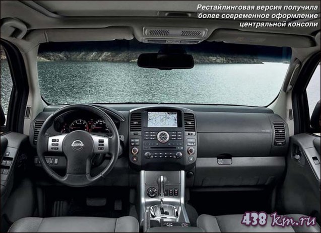 Дизайн автомобиля хорош — настоящий брутальный внедорожник, и пусть Nissan немного потерял на аэродинамике из-за этого рубленого стиля, зато Pathfinder приобрел более важное качество — умение нравиться. У нас всегда в моде агрессивность во внешнем облике, а уж Pathfinder на дороге недооценить или не заметить трудно. У меня складывается ощущение, что нынешний корпоративный стиль внедорожников начал формироваться на «Патруле» Y61, продолжил на «Патфайндере» R51 и окончательно сформировался уже на новом Patrol Y62. В общем, понятно, куда ветер дует. По мне так Pathfinder — золотая середина. Гламура еще нет, а с закругленными кромками экстерьера уже попрощались. Посмотрите на эту сверкающую решетку радиатора, бампера, огромные расширители колесных арок — просто профессиональный боец!