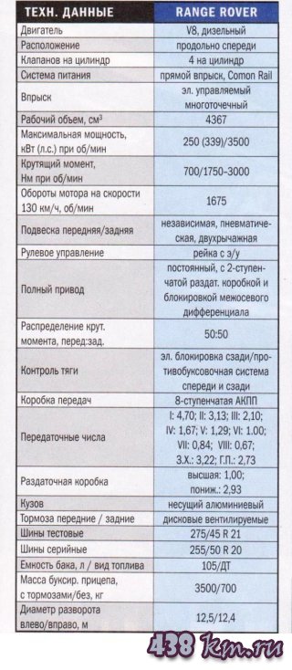 Range Rover тех. характеристикиRange Rover тех. характеристики