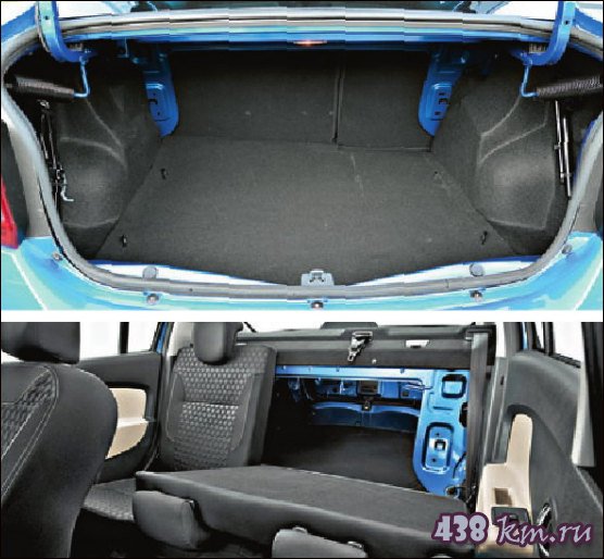 Но отнюдь не в этом заключается главная прелесть прогресса, которым перемолотило всю машину. Складывается ощущение, что французы тщательно прошерстили все профильные форумы, на которых «Логан» ругали за излишнее эргономическое своеобразие, и приговорили обнаруженные недостатки к высшей мере наказания. Кнопка клаксона на левом подрулевом переключателе? Пошла прочь! - прикажем ступице рулевого колеса издавать звуковой сигнал. Кнопки передних стеклоподъемников внизу центральной консоли, а задних - в ногах пассажиров? А ну-ка марш на обшивку дверей! Намертво прикрученная спинка дивана не пускает груз из багажника в салон? Мебель, изволь исполнить команду «Лежать» - причем по частям! Поскольку новые хоромы возводились внутри старых, то «Логан» унаследовал от своего предшественника и особенности геометрии салона. За это его можно только похвалить, ибо простор и компоновка у машины до сих пор отдают гениалыциной: это и приличный запас воздуха над головой, и просторный задний ряд, снискавший любовь у таксистов: здесь вполне сносно умещаются три взрослых пассажира, что для автомобиля такого класса является серьезным достижением.
