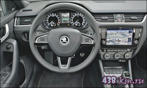 О да - не то слово! Стремительный разгон сопровождается сочным бархатным урчанием, которое можно усугубить, нажав на кнопку с логотипом RS - она приютилась на центральном тоннеле под блоком управления «климатом». Одновременно с «обогащением» звука меняется характер взаимодействия двигателя и коробки: «Шкода» спускает передачи, поднимая стрелку тахометра в зону более высоких оборотов, и начинает острее реагировать на газ. Это уместно на извилистых дорогах, где каждый поворот превращается в приключение, однако досаждает на скоростных шоссе: вместо перехода на высшую ступень DSG изображает пребывание в тонусе, искусственно поддерживая обороты выше нормы и сознательно не переключаясь наверх. Впрочем, из этой натужной боеготовности «Рысь» легко вывести одним нажатием все на ту же кнопку.