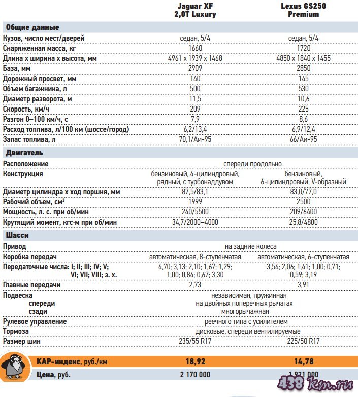 ЯГУАР-XF против ЛЕКСУСА-GS