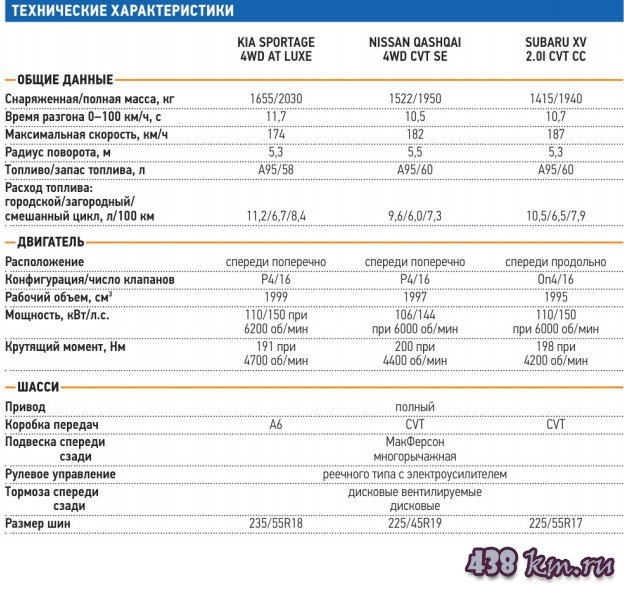 Сравниваем автомобили Kia Sportage Nissan Qashqai Subaru XV