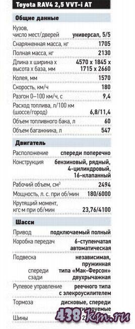 Тойота РАВ4 Технические характеристикиТойота РАВ4 Технические характеристики